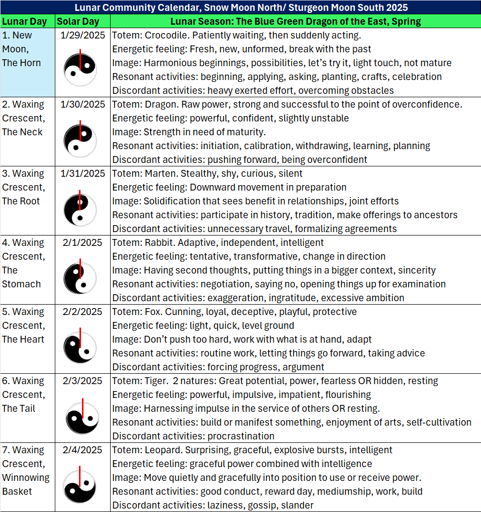2025 Snow Moon North/Sturgeon Moon South, Spring